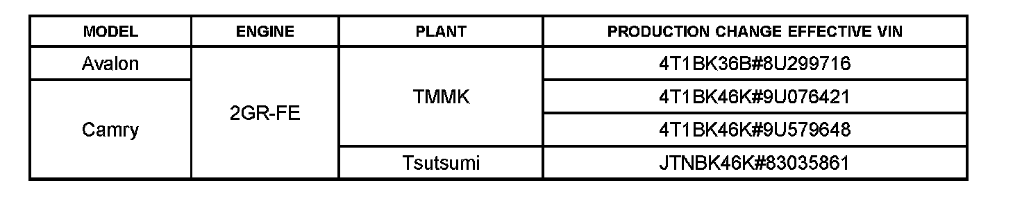 This TSB applies to vehicles produced BEFORE the Production Change Effective VINs shown below.