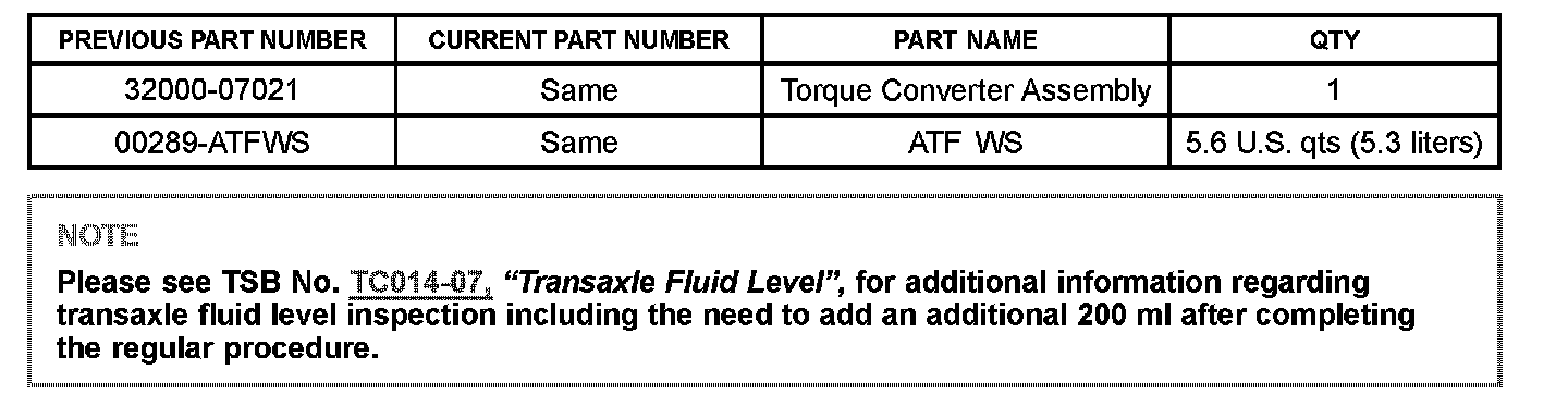 Refer to TSB No. TC014-07, "Transaxle Fluid Level", to properly adjust the transaxle fluid level.