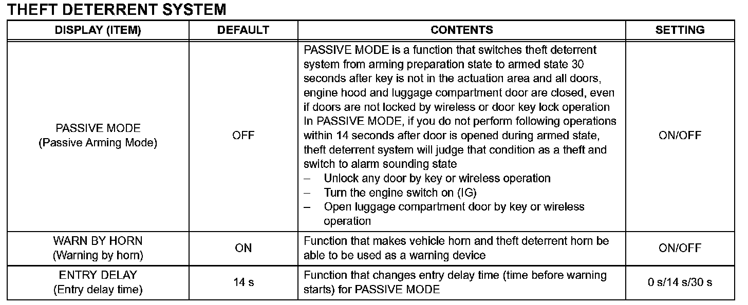 2. THEFT DETERRENT SYSTEM (w/o Smart Key System)