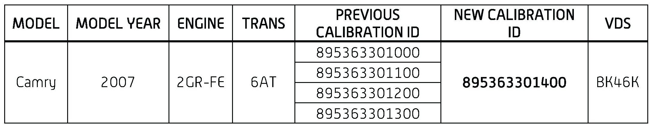 - Calibration ID(s) [Refer to the Calibration Identification Chart for the NEW CALIBRATION ID]