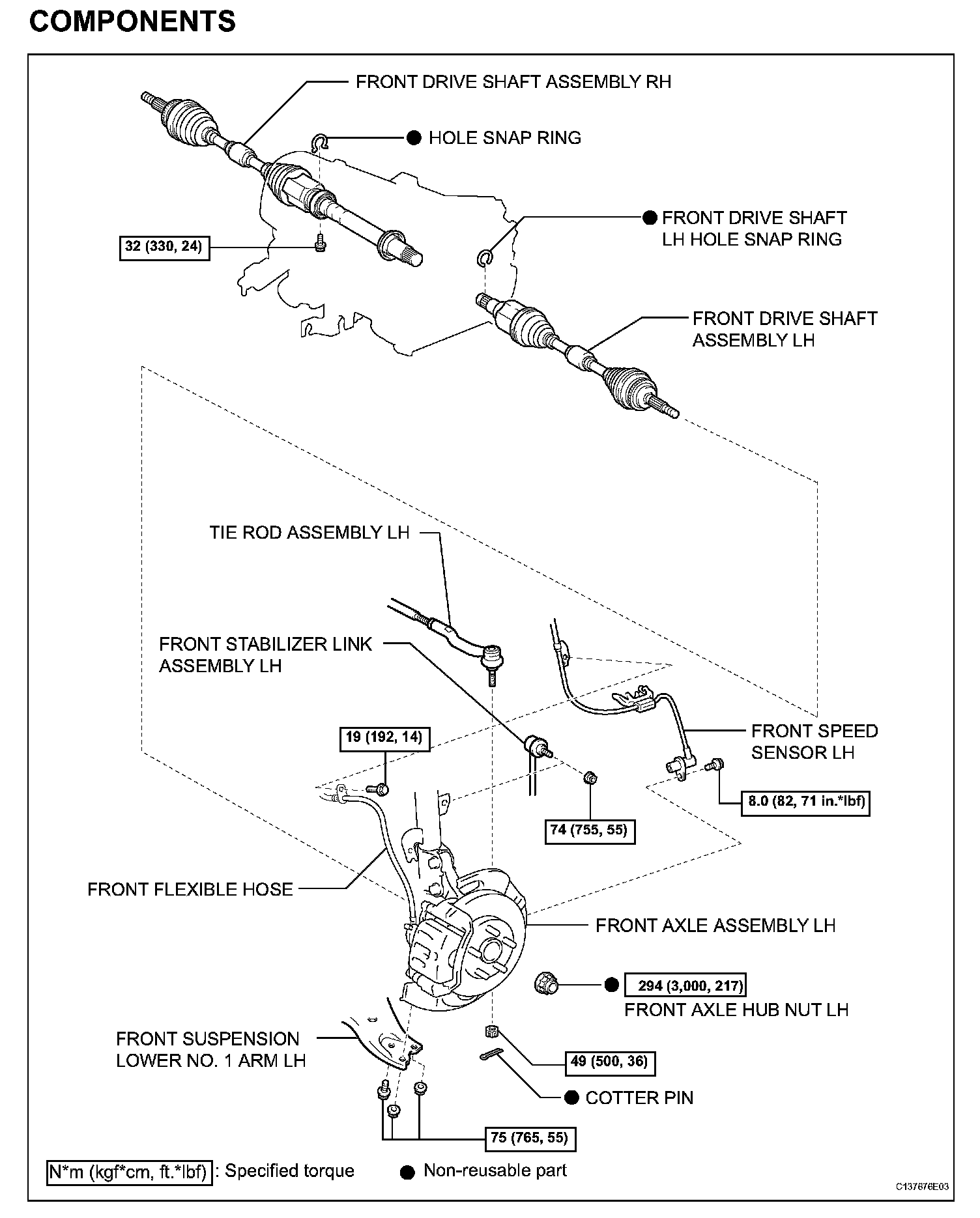 15. REMOVE FRONT DRIVE SHAFT ASSEMBLY LH