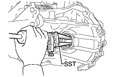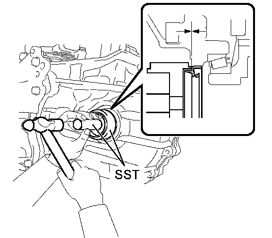 (a) Using SST and a hammer, install a new oil seal to the transaxle case.
