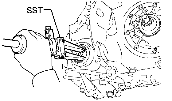 (a) Using SST, remove the oil seal from the transaxle housing.