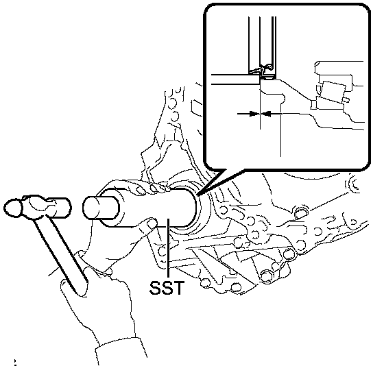(a) Using SST and a hammer, install a new oil seal to the transaxle housing.