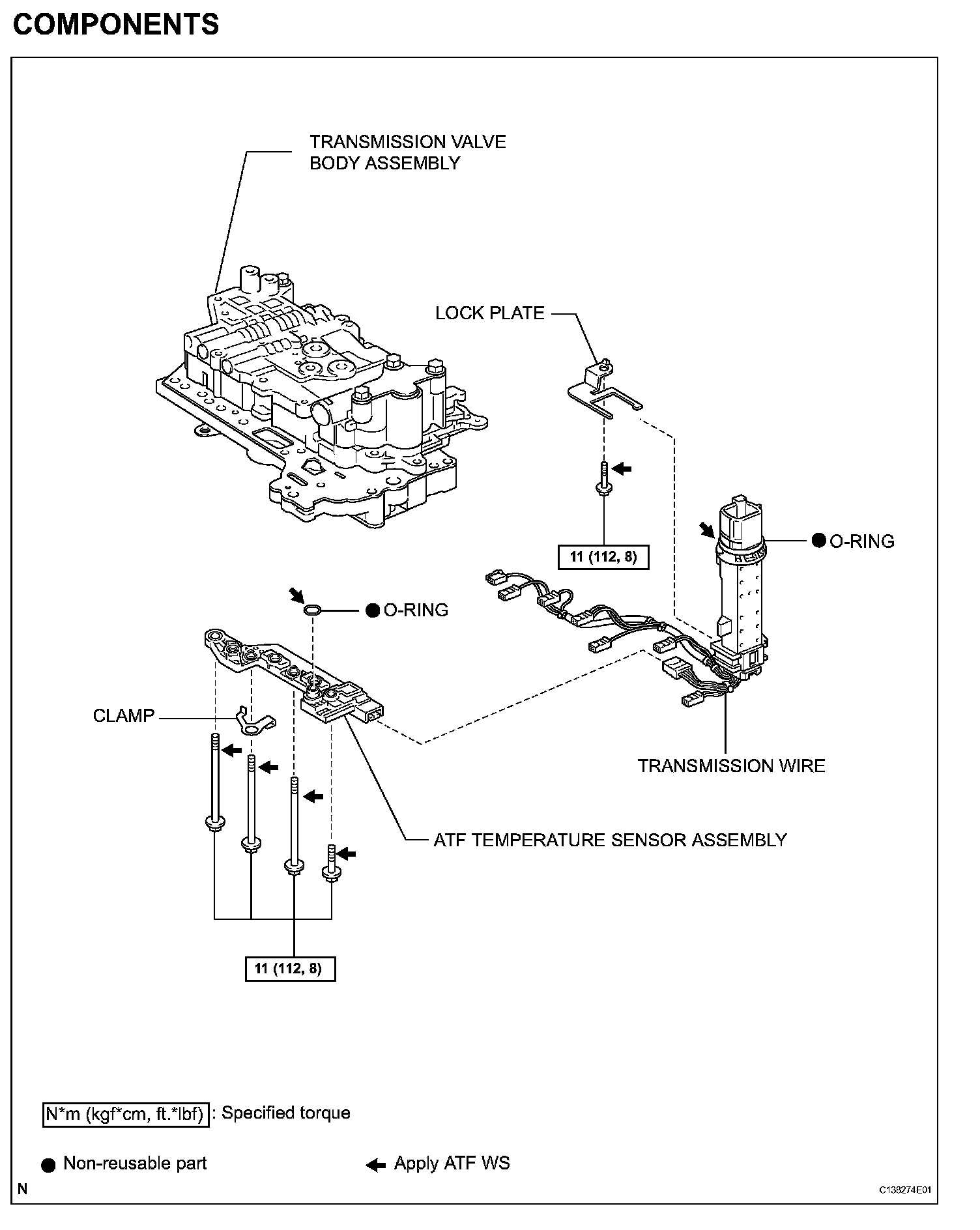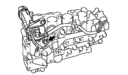 (c) Install the ATF temperature sensor assembly and clamp to the valve body assembly with the 4 bolts.