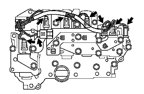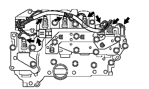 (c) Disconnect the 8 connectors and remove the transmission wire from the valve body assembly.