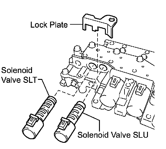 (a) Remove the lock plate and shift solenoid valve SLT from the valve body assembly