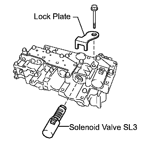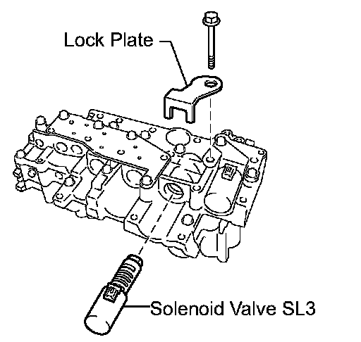 (b) Install the shift solenoid valve SL3 and lock plate to the valve body assembly with the bolt.