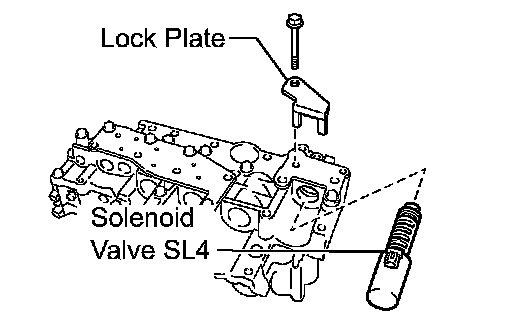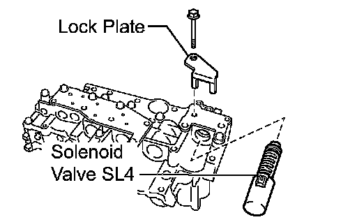 (b) Install the shift solenoid valve SL4 and lock plate to the valve body assembly with the bolt.