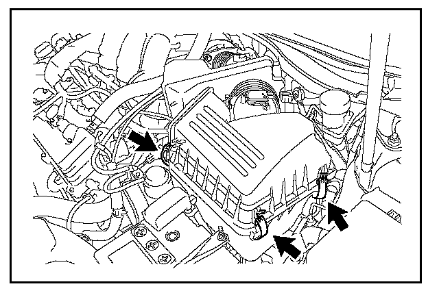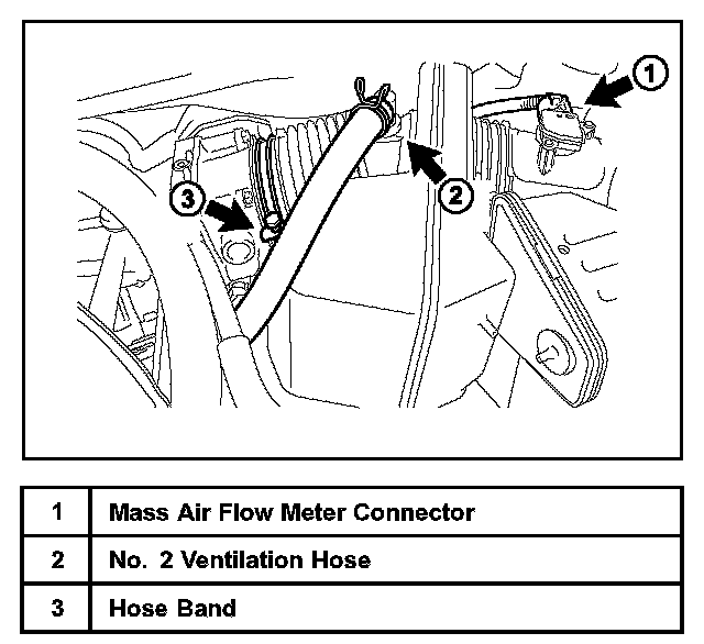 C. Disconnect the mass air flow meter connector, No. 2 ventilation hose, and hose band.