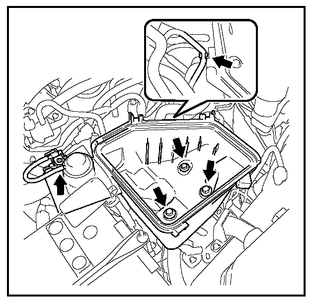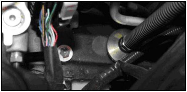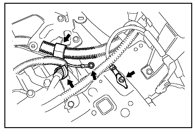 7. Remove the 2 bolts and 2 clamps from the body, then unclip the wiring harness on the transmission.