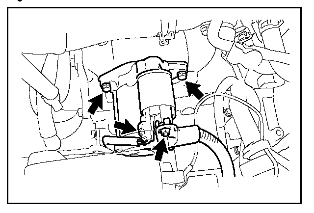 D. Remove the 2 bolts and starter assembly.
