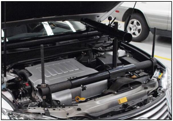 Ensure the Engine Support Bar is stable when fully assembled and mounted to the vehicle to ensure no damage to vehicle or technician.