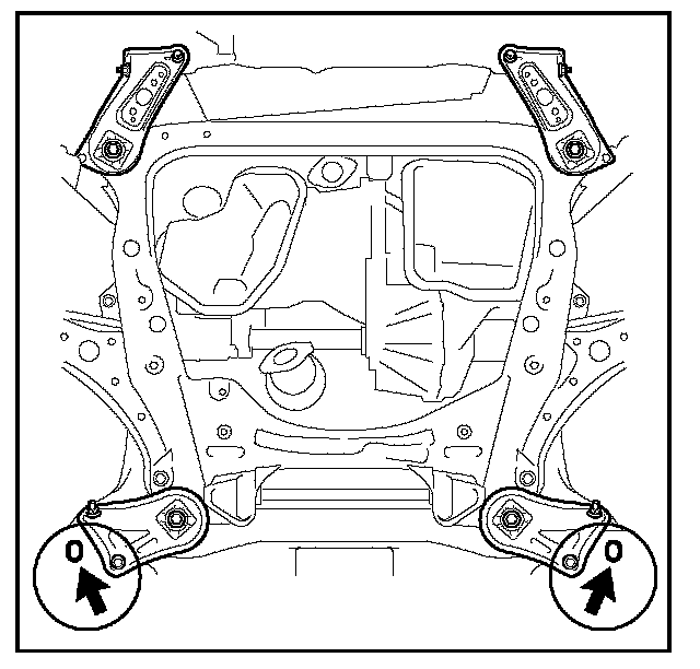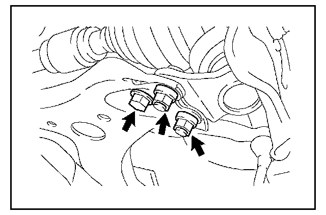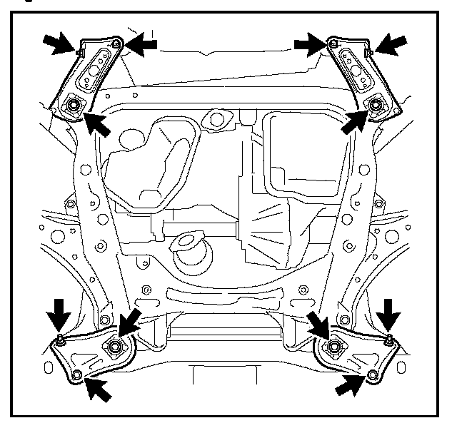30. Remove the engine mounting insulators bolts and nuts from the sub-frame assembly.