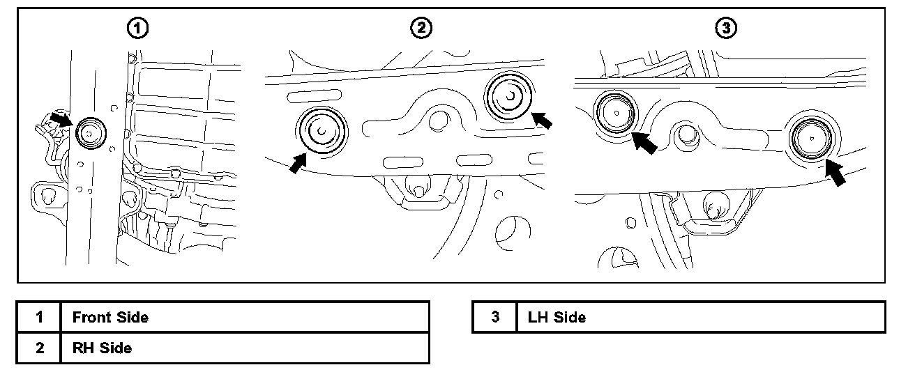 Before removing the bolts ensure the Engine Support Bar is secure and is supporting the engine weight to ensure no damage to vehicle or technician.