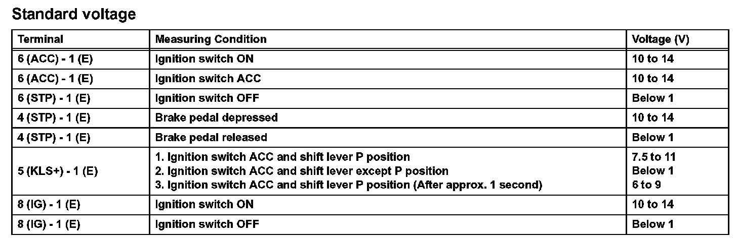 (d) Turn the ignition switch on (IG), depress the brake pedal and check that the shift lever can be moved to another position.