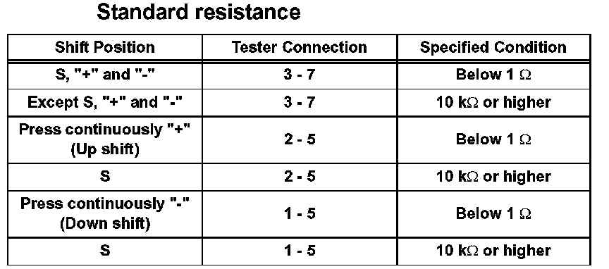 (a) Measure resistance between each terminal of the shift lock control unit assembly when the shift lever is moved to each position.