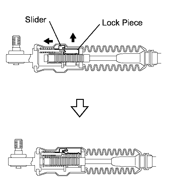NOTICE: Firmly push in the lock piece until the slider lock is engaged.
