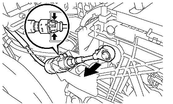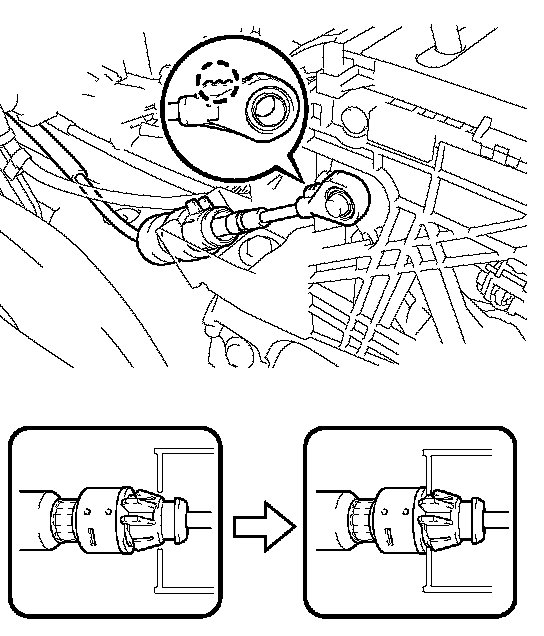 (b) Disconnect the transmission control cable assembly from the transmission floor shift assembly while pushing the 2 claws of the floor shift cable.