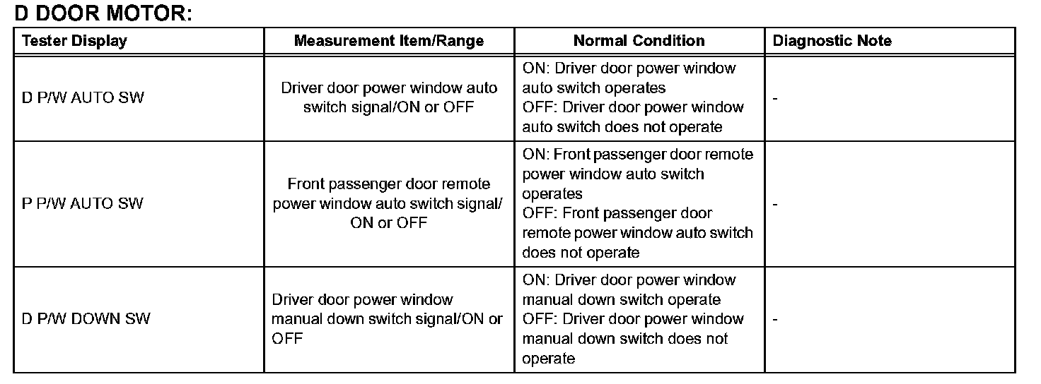 HINT: Using the DATA LIST displayed on the intelligent tester, the value of the switches, sensors, actuators, etc. can be read without part removal. Reading the DATA LIST as the first step in troubleshooting is one way to shorten the labor time.