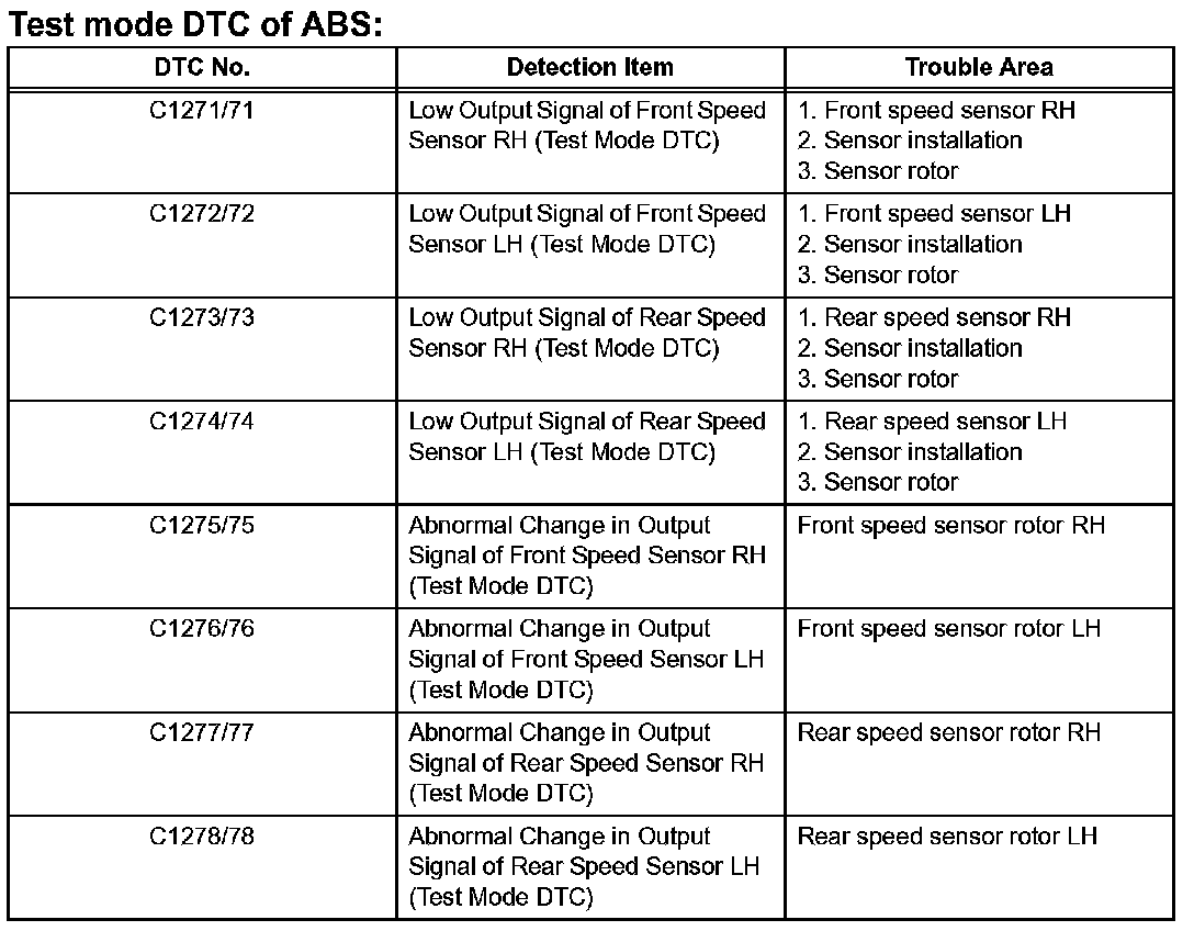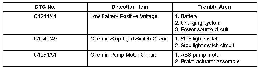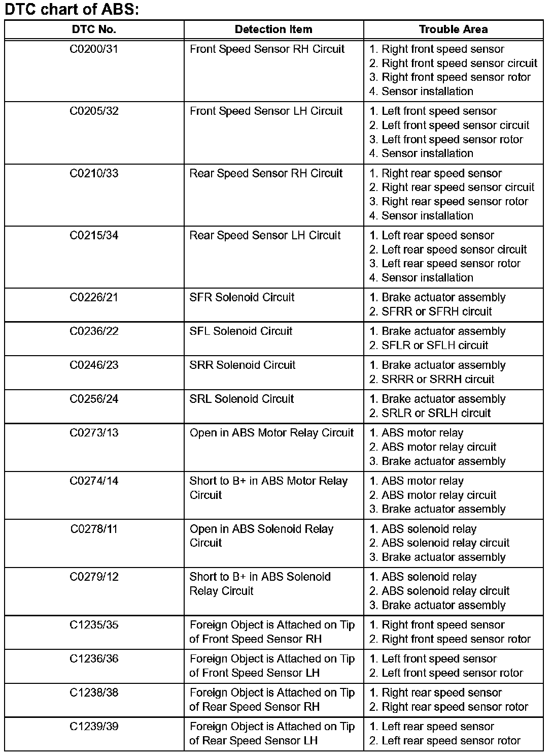 DIAGNOSTIC TROUBLE CODE CHARTC0200/31-C1239/39: