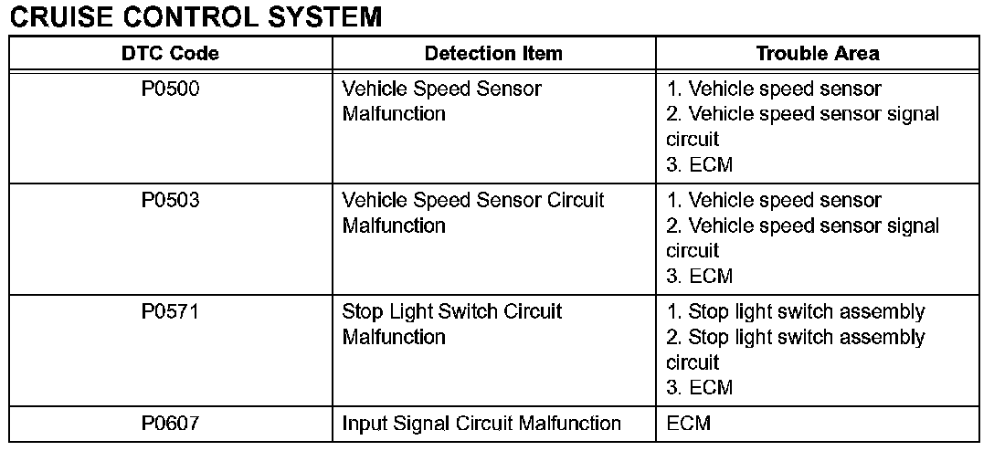 P0500 - P0607: