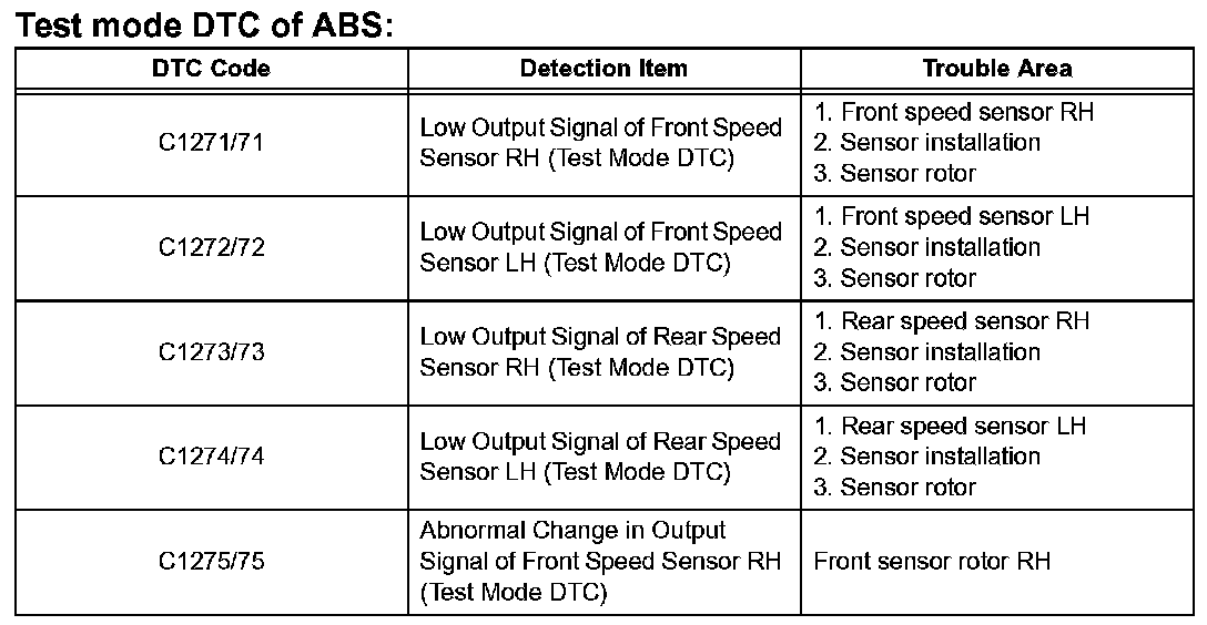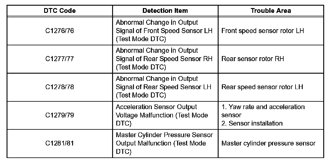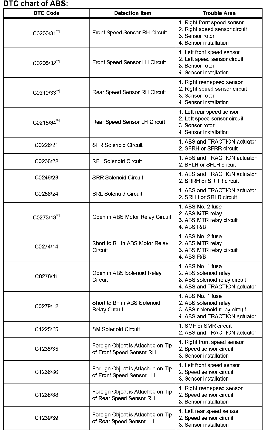DIAGNOSTIC TROUBLE CODE CHARTHINT: If a malfunction code is displayed during the DTC check, check the circuit indicated by the DTC. For details of each code, refer to the respective "DTC No." in the DTC chart.