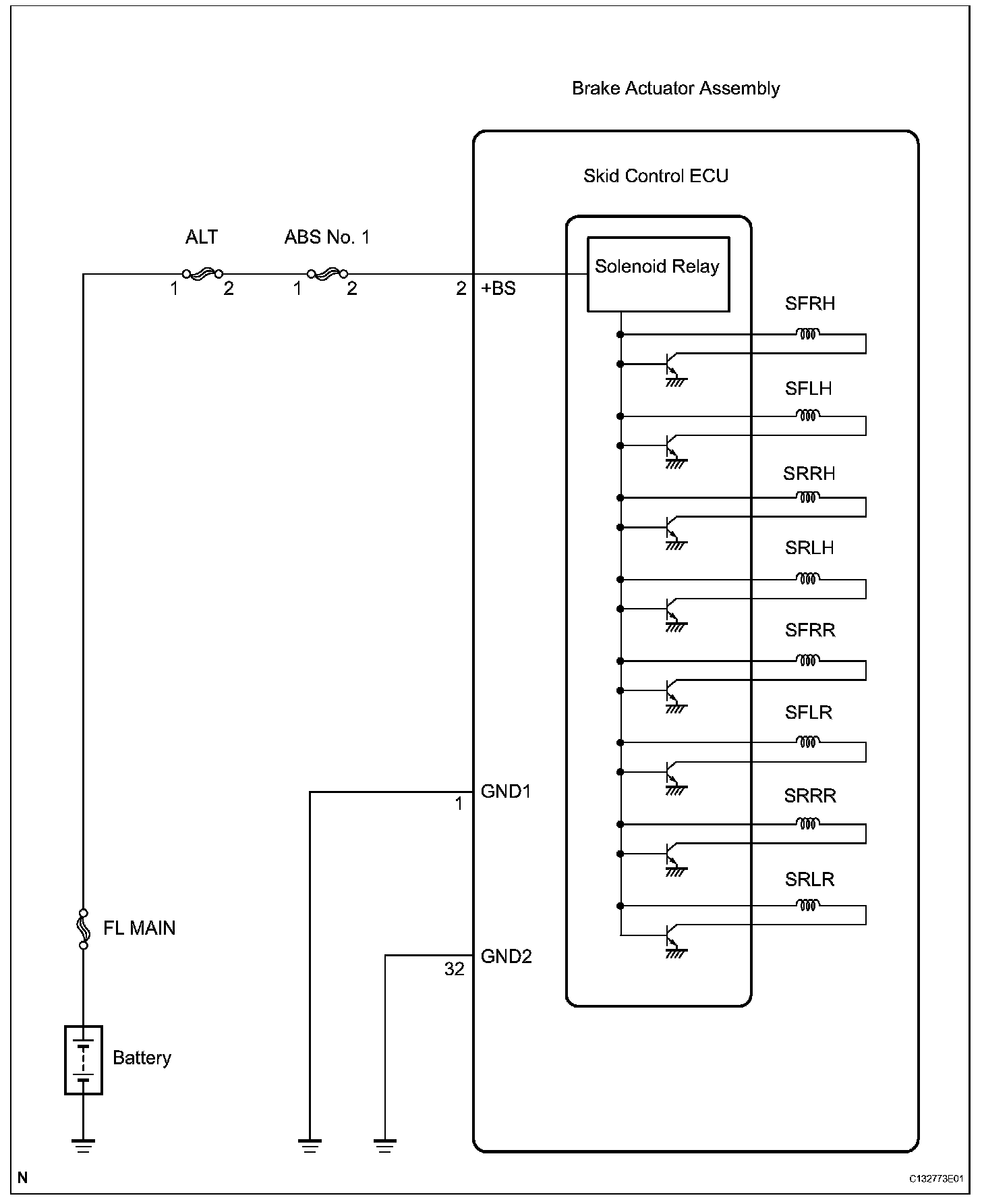 This relay supplies power to each ABS solenoid.