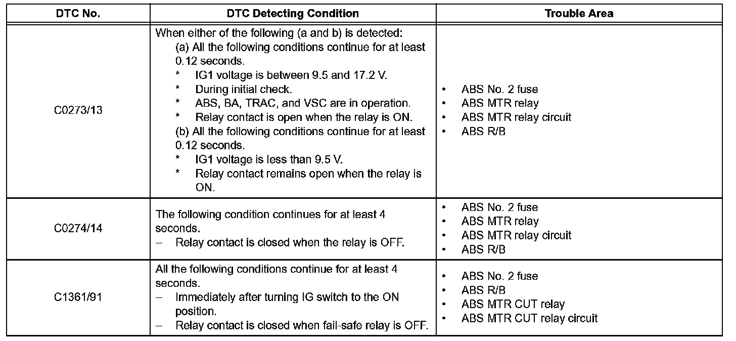 DTC C0273/13 Open in ABS Motor Relay CircuitDESCRIPTION