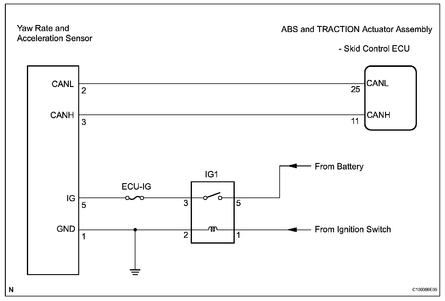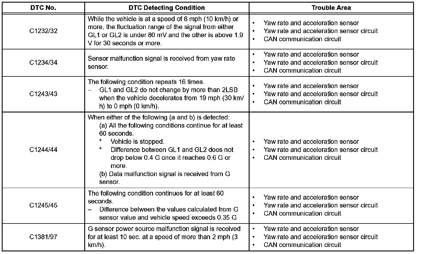 The yaw rate and acceleration sensors detect any gravity applied to the vehicle and transmit the signal to the skid control ECU via the CAN communication system.