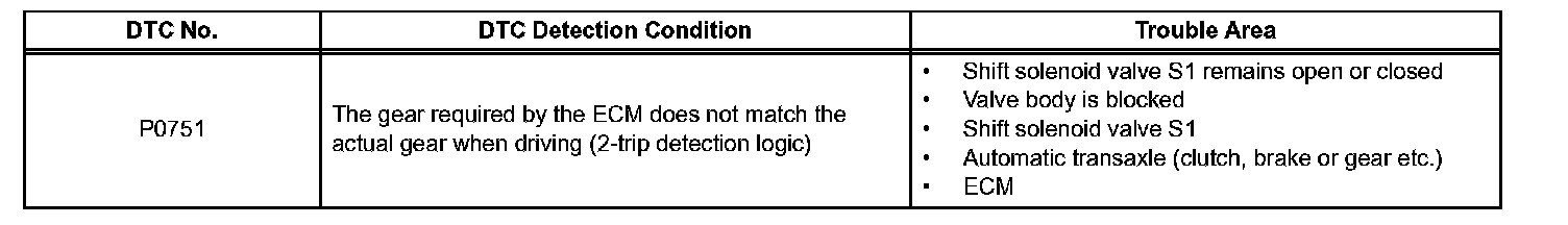 DTC P0751 Shift Solenoid "A" Performance (Shift Solenoid Valve S1)SYSTEM DESCRIPTION