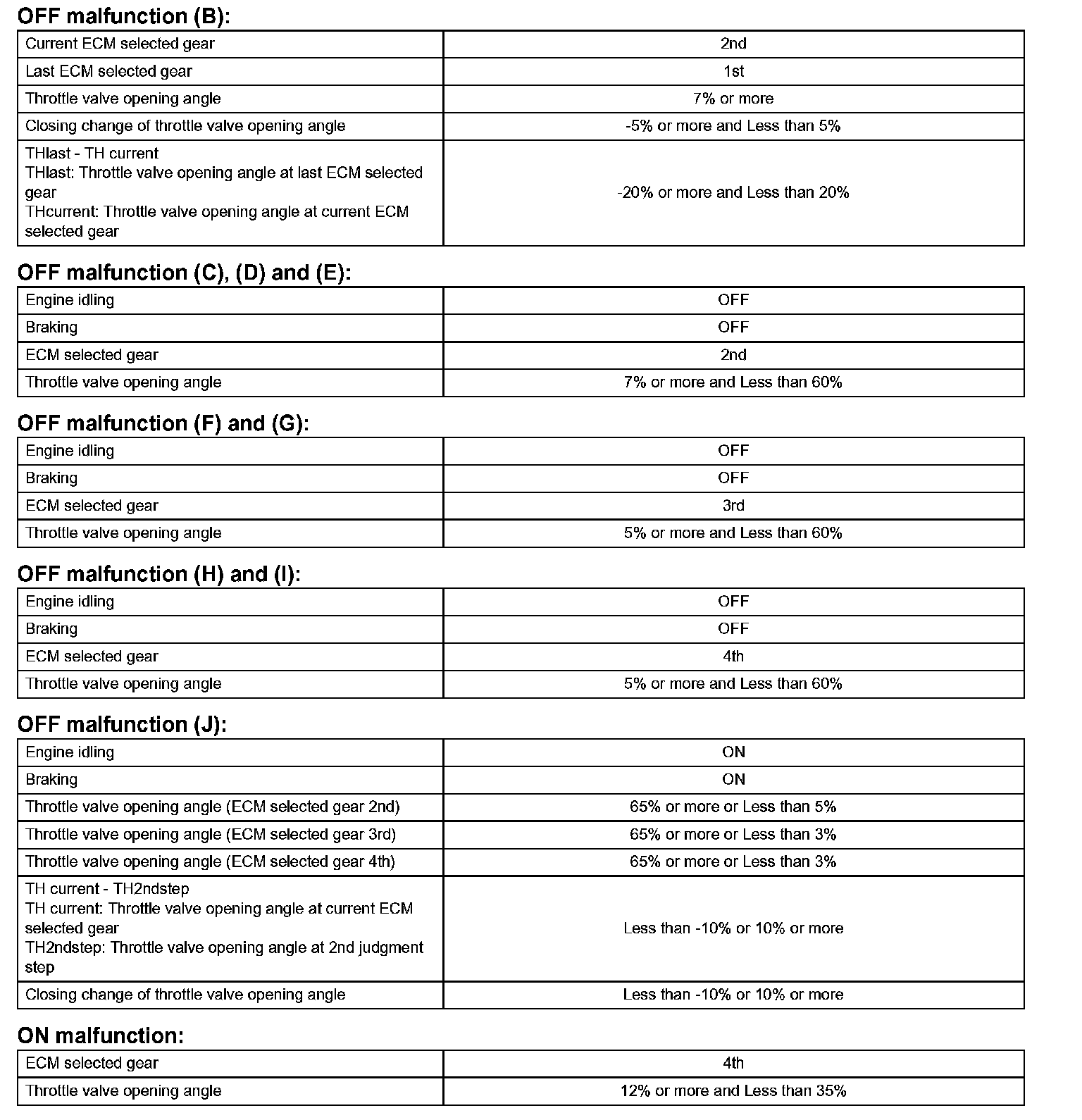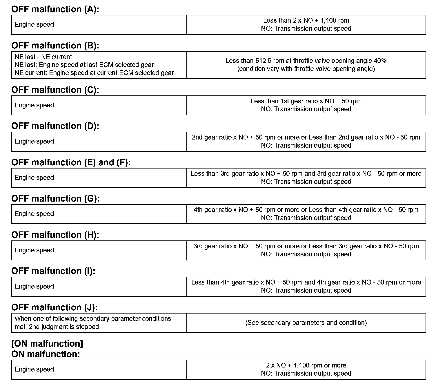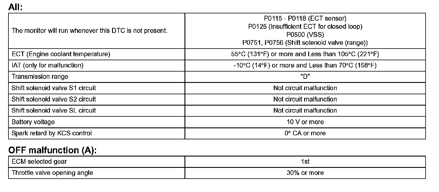 Then the ECM compares the actual gear with the shift schedule in the ECM memory to detect the mechanical problems of the shift solenoid valves, the valve body or automatic transaxle (clutch, brake or gear etc.).