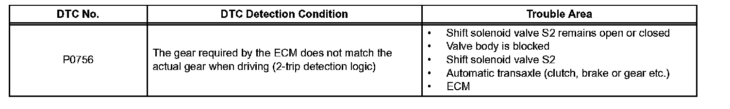 DTC P0756 Shift Solenoid "B" Performance (Shift Solenoid Valve S2)SYSTEM DESCRIPTION