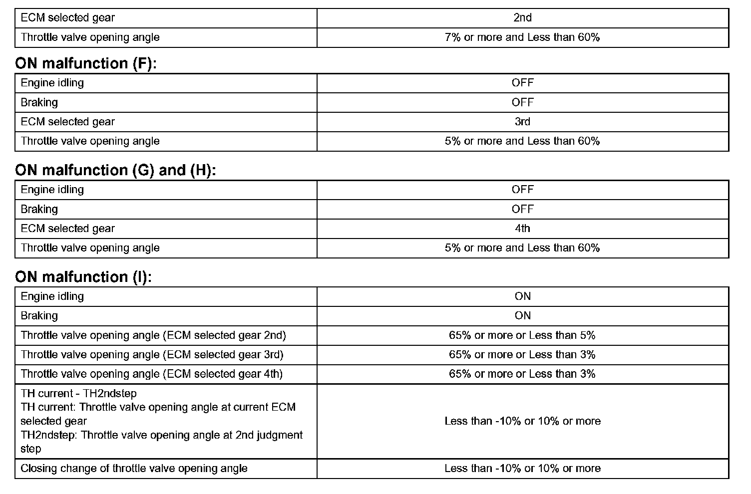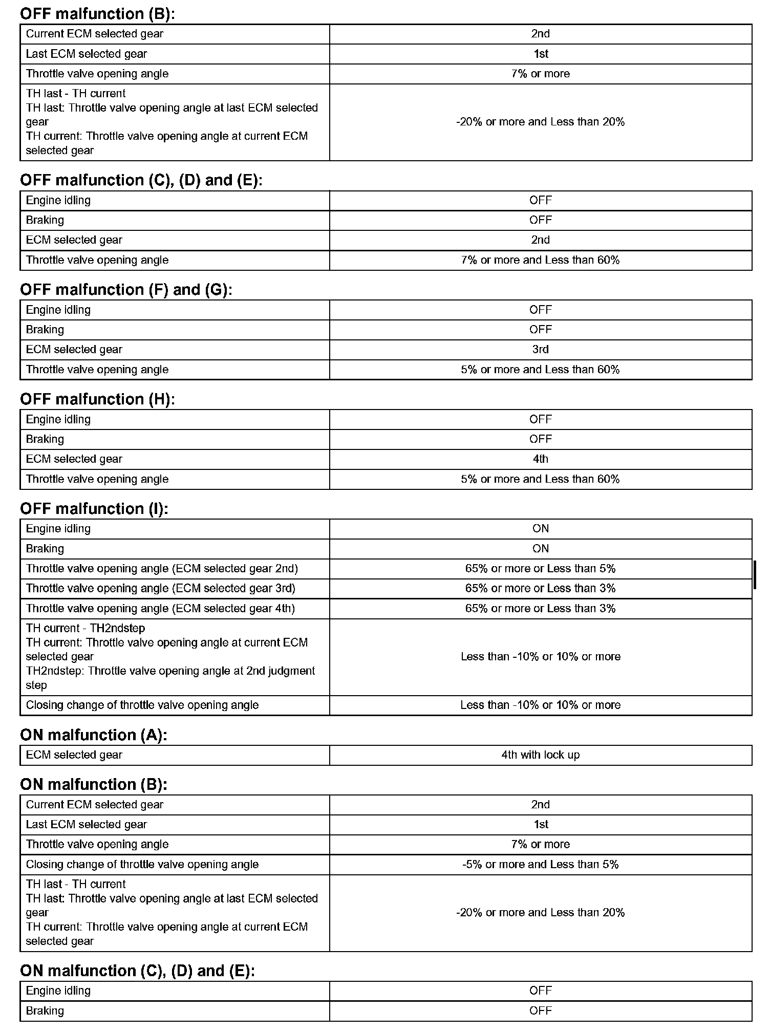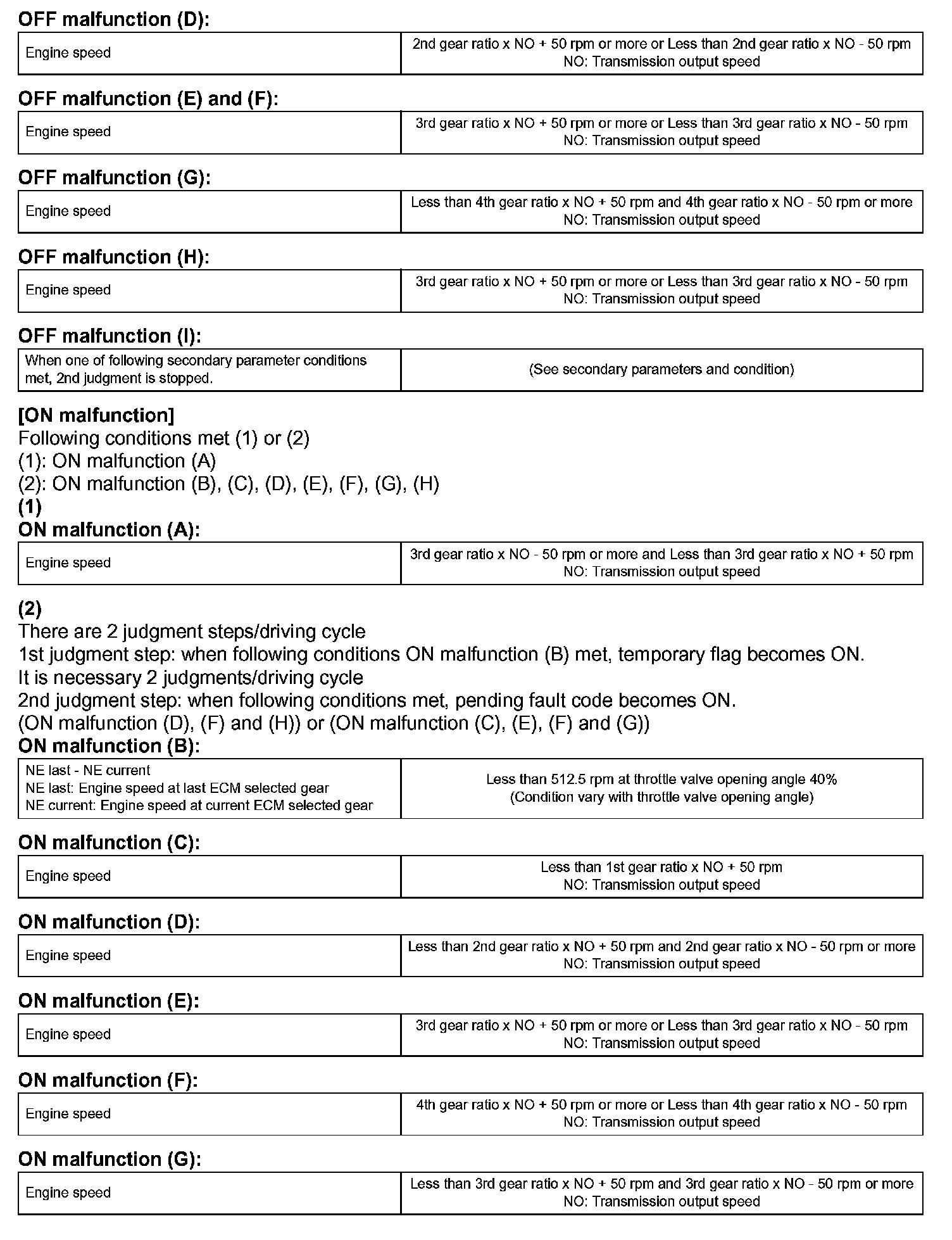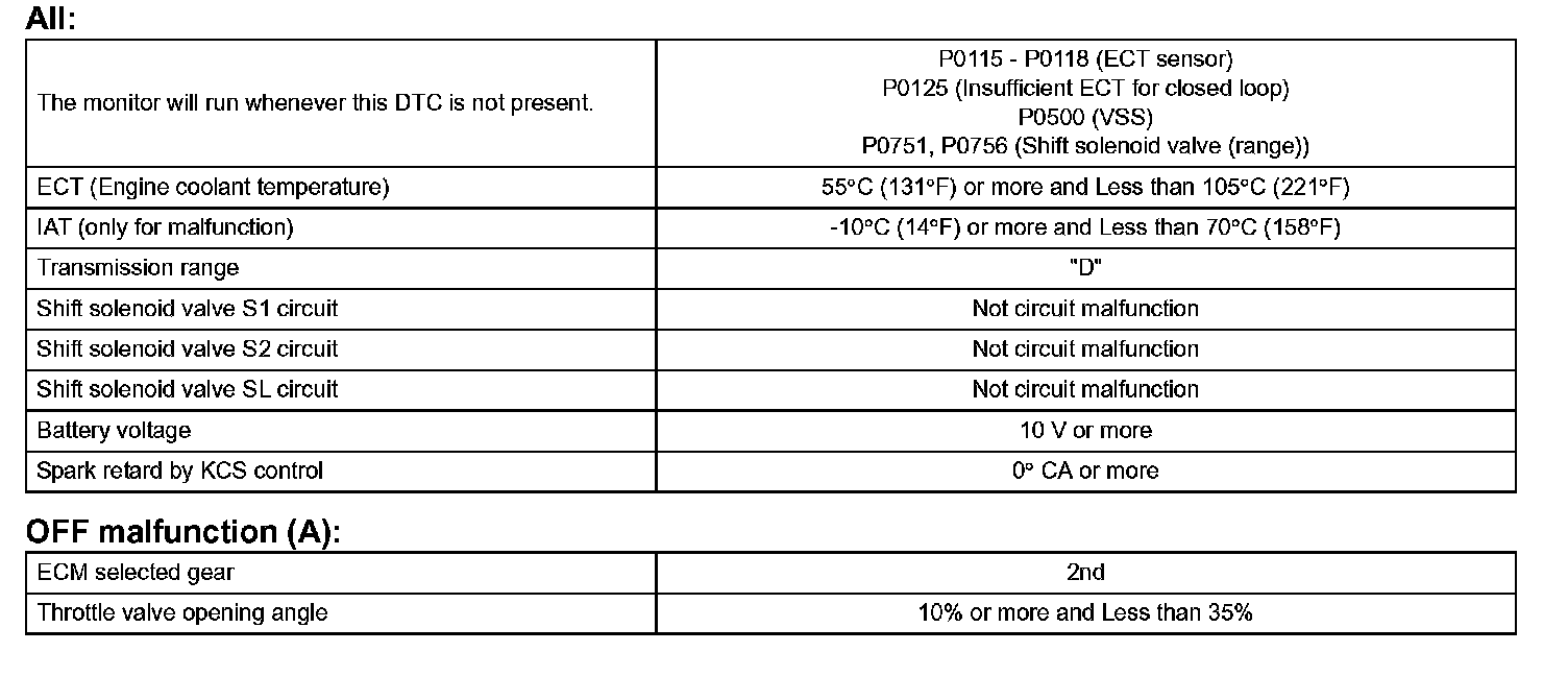 Then the ECM compares the actual gear with the shift schedule in the ECM memory to detect the mechanical problems of the shift solenoid valves, the valve body or automatic transaxle (clutch, brake or gear etc.).