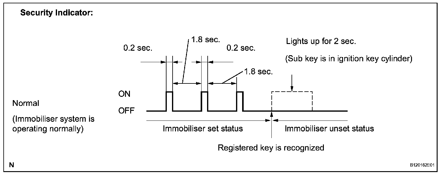 b. The security indicator operation pattern is as shown (when changing from the immobilizer set status to the unset status):