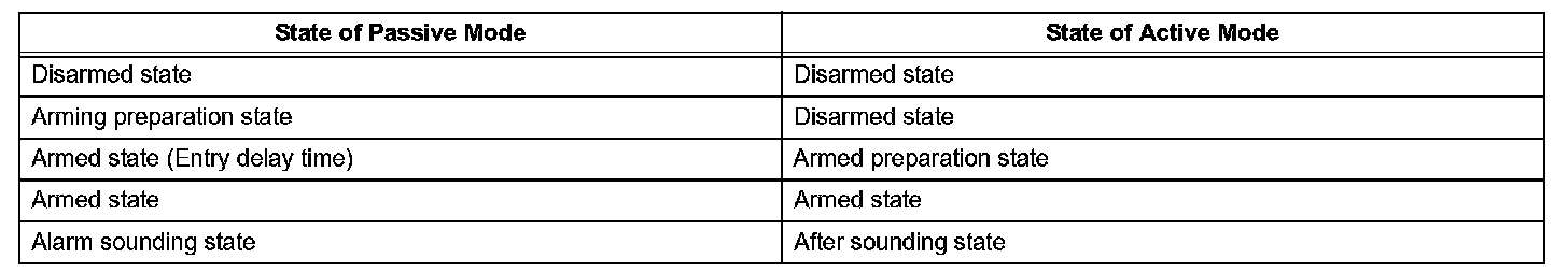 HINT: Each mode (active and passive) has 4 states: disarmed state, arming preparation state, armed state, and alarm sounding state.