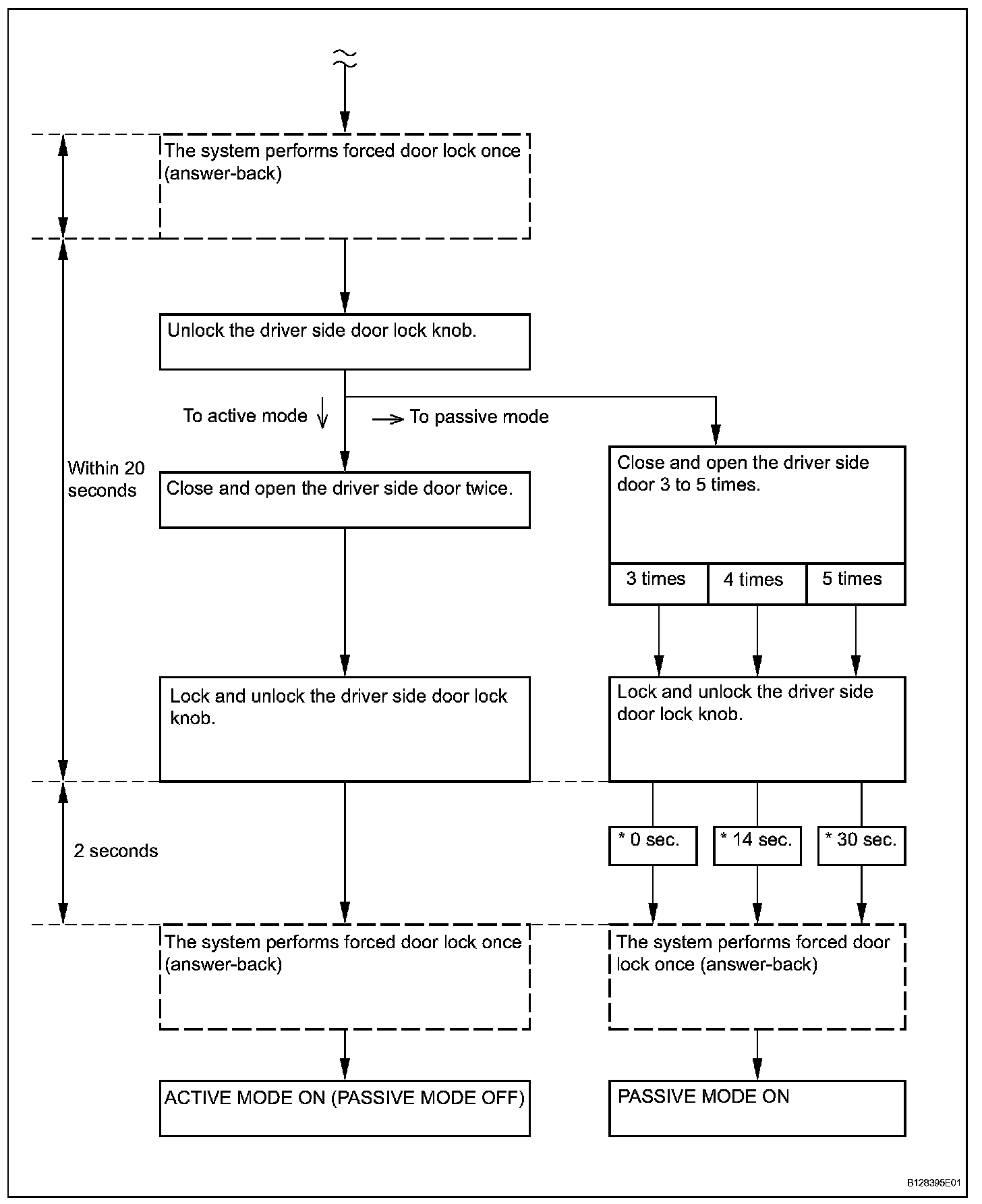 - A forced door lock signal is not output during passive arming mode (see FORCED DOOR LOCK CONTROL).