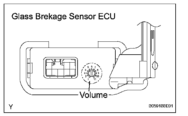 b. The sensitivity of the glass breakage sensor can be adjusted by the volume switch in the glass breakage sensor ECU.