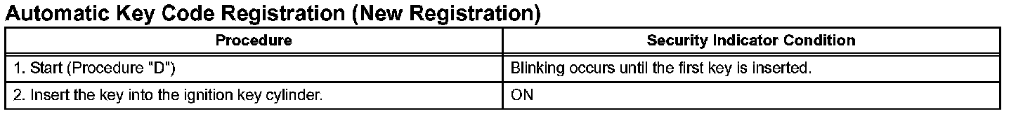 NOTE: If the key code registration has failed in automatic key code registration mode, code 2-1 will be output from the security indicator. Trying to register an already registered key will cause code 2-2 to be output when the key is inserted. If the number of registered key codes exceeds the limit, code 2-3 will be output from the security indicator. The output details are shown in procedure "B".