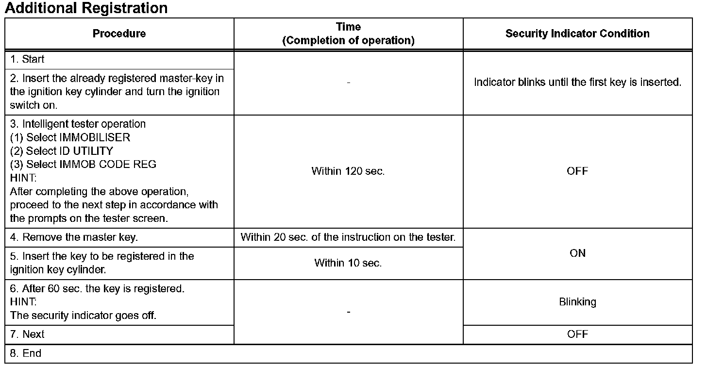 a. Registration of additional key (Procedure "A"): Register an additional key by using the intelligent tester.