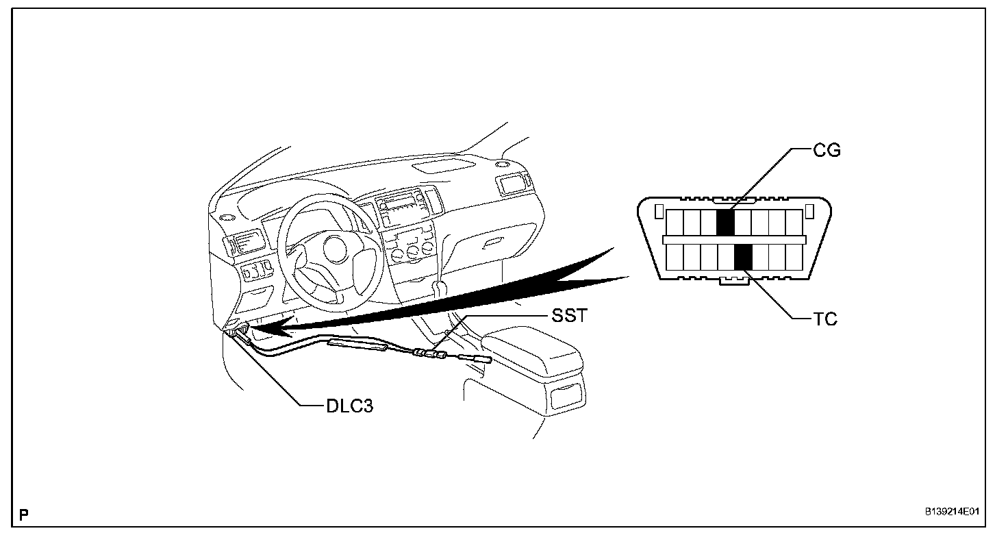 1. Using SST, connect terminals TC and CG of the DLC3.
