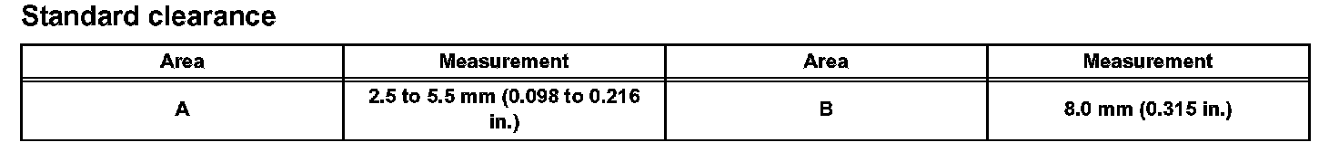 a. Check that the clearance measurements of areas A to B are within the standard range.