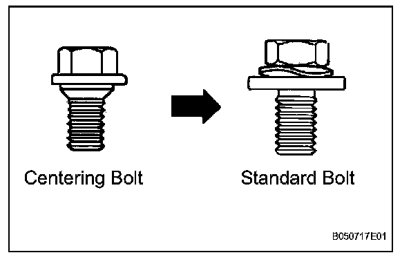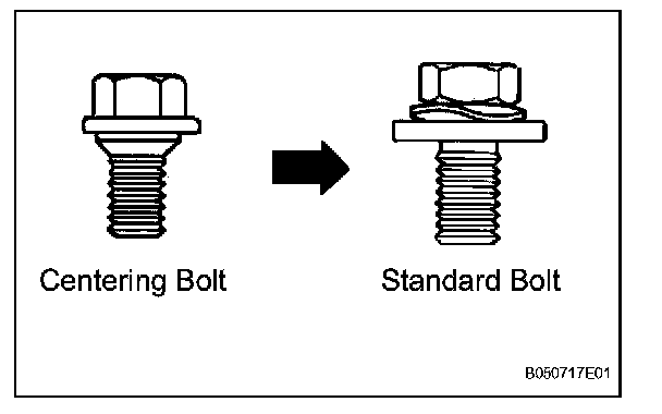 - Centering bolts are used to mount the hood hinge and hood lock. The hood and hood lock cannot be adjusted with the centering bolts on. Substitute the centering bolts with standard bolts (with washers) when making adjustments.