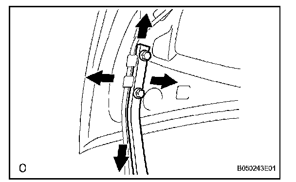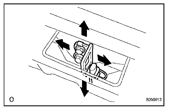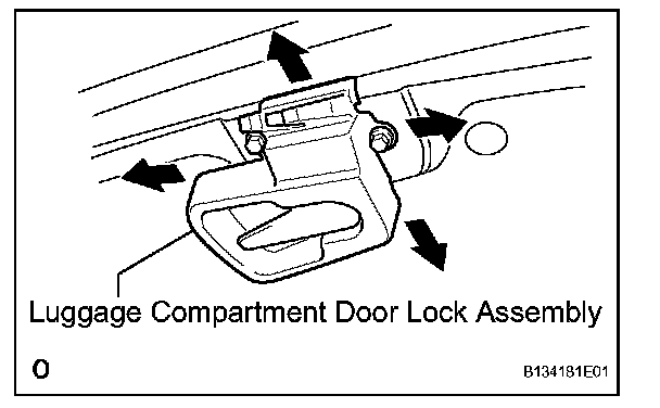 5. Perform the forward/rearward and right/left adjustments, by loosening the bolts of the luggage compartment door.