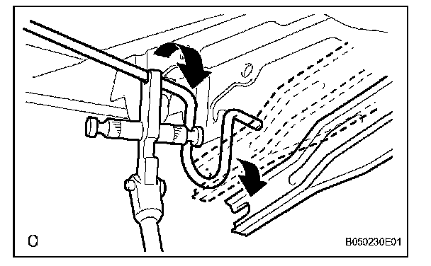 d. Slowly lift the SST, and remove the torsion bar from the torsion bar bracket with SST.