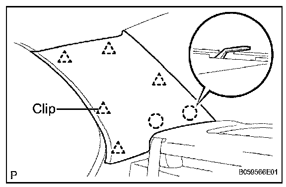 a. Remove the 3 clips and roof headlining.