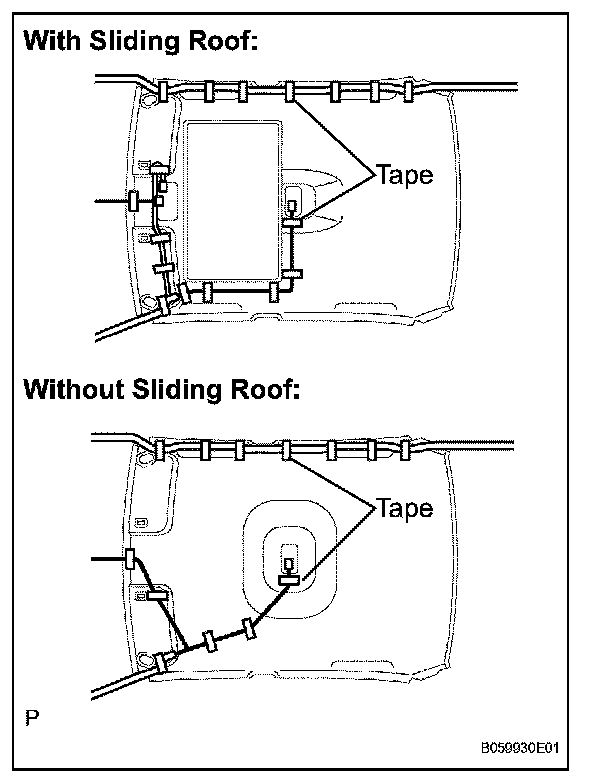 b. Attach the roof wire harness with tape.