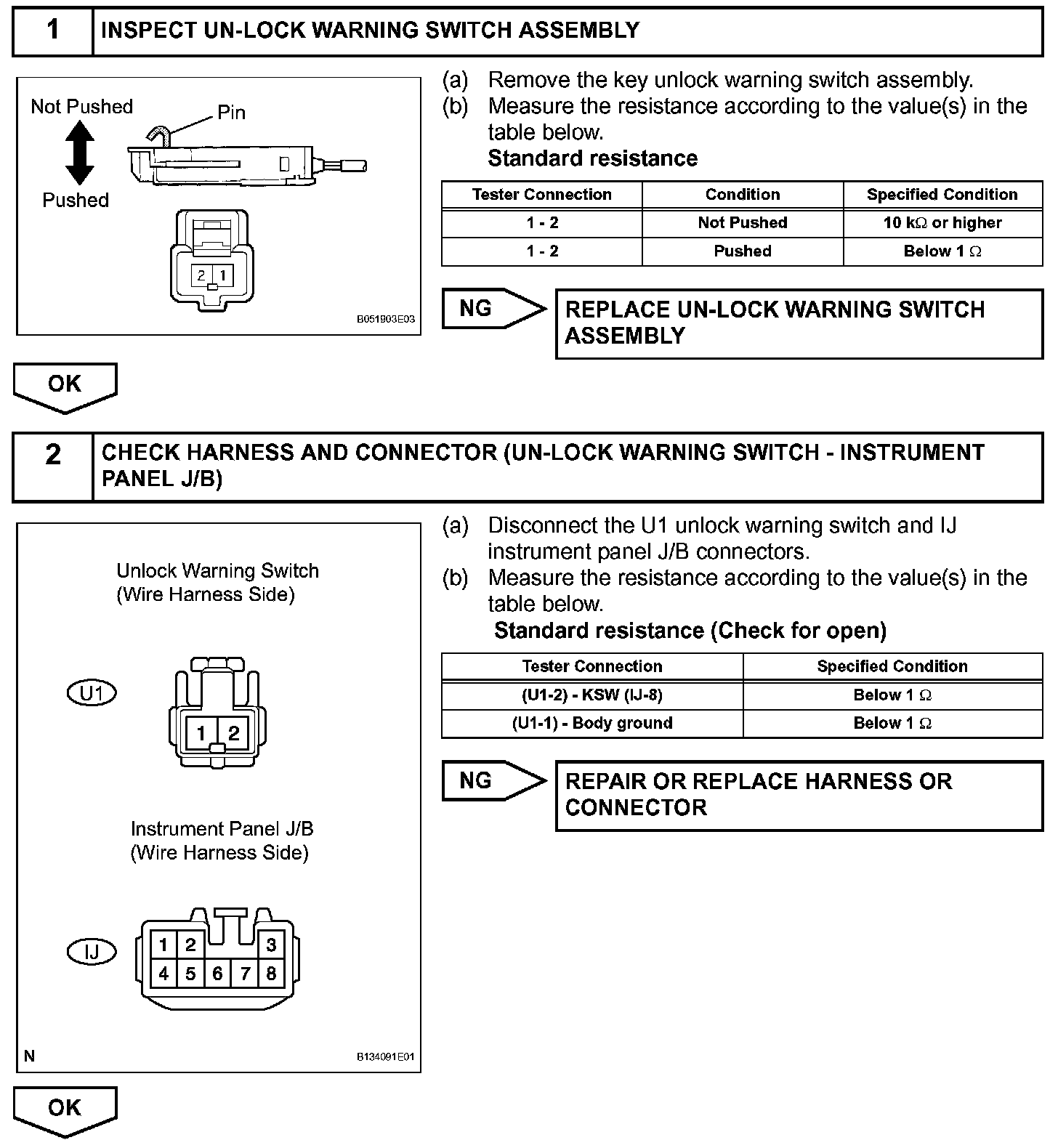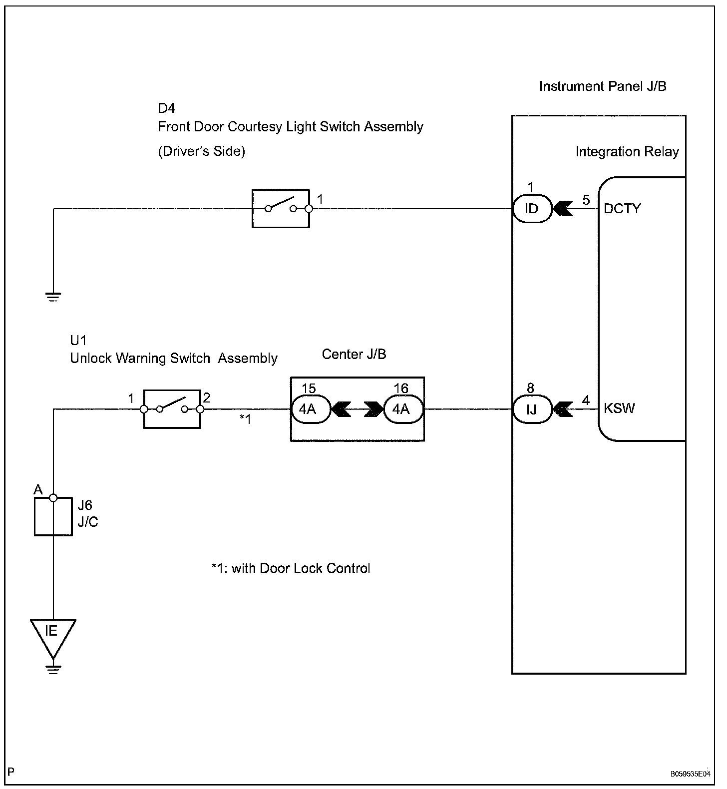 The unlock warning switch turns on when the key is inserted into the ignition key cylinder and the door courtesy switch turns on when the driver side door is opened. The integration relay monitors the condition of both switches. If the integration relay detects that both the unlock warning switch and door courtesy switch are on, the integration relay prevents door lock operations so that the key cannot be locked in the vehicle.