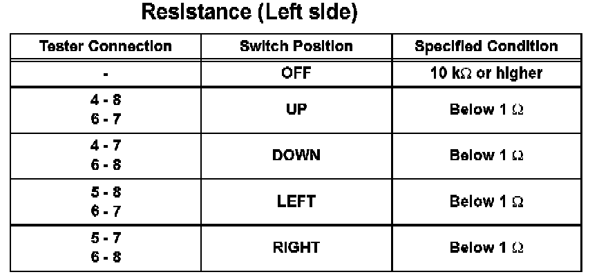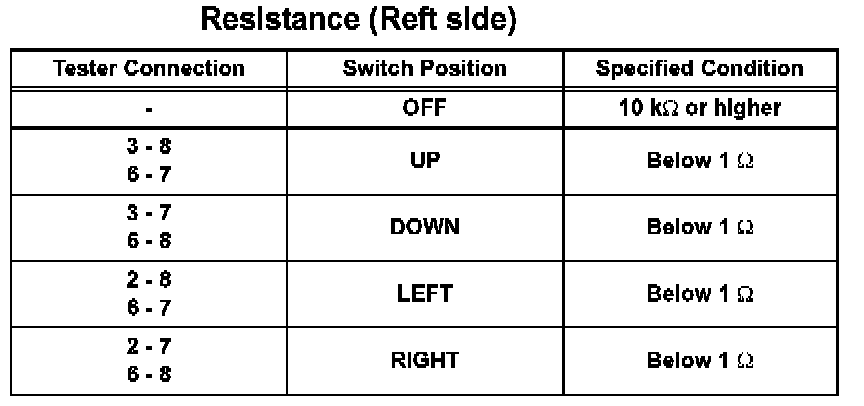 Power Mirror Switch: Testing and Inspection