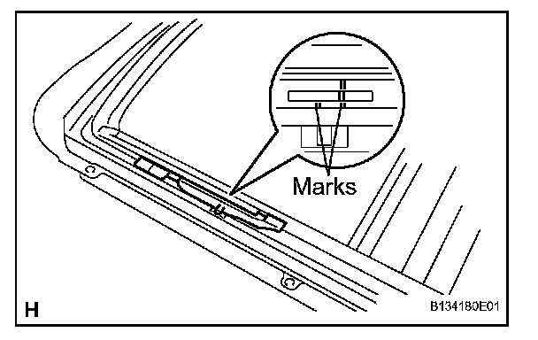 d. Adjust the roof rail by sliding the cable forward or backward to align the 2 marks, as shown in the illustration.